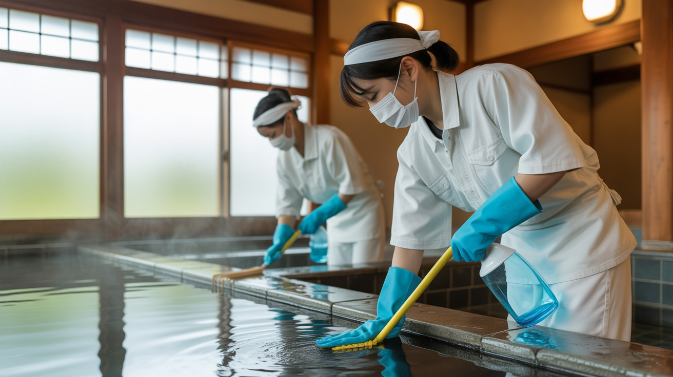 温浴施設は、清潔さが非常に重要です。 清掃スタッフの確保や教育でお悩みでしたら、岐阜県を中心に多数の実績がある弊社にご相談下さい。人材確保から教育、運用、質の維持までワンストップでご対応可能です。