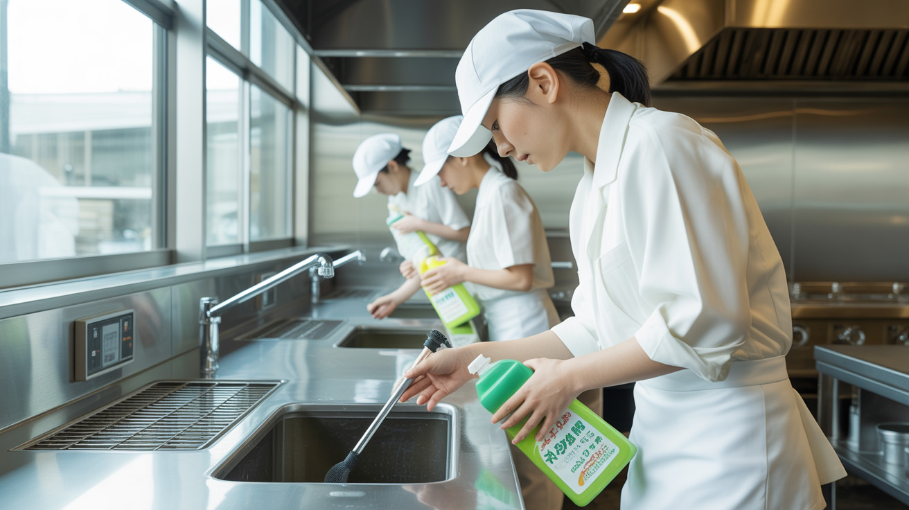 日常の施設清掃に加えて、グリストラップ洗浄やダクト清掃などの定期メンテナンスを計画に組み込むことが、最も現実的な解決策です。